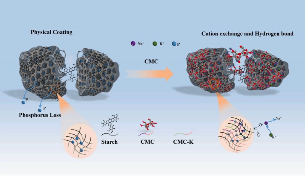 在创新复合粘结剂技术,提升肥料机械性能与缓释效果方面,课题组以羧甲基纤维素钠(CMC-Na)和淀粉为复合粘结剂,通过挤压造粒工艺制备了新型生物炭基缓释磷肥颗粒(BSRPF)。该研究创新性地利用两种天然高分子材料的协同交联作用,解决了单一粘结剂存在的机械强度不足、耐水性差等问题,为规模化农业应用奠定了基础。研究成果以“Preparation of biochar slow-release phosphate fertilizer granules with starch-CMC-Na binder: improving granule mechanical and slow-release properties”为题发表于国际期刊《Journal of Environmental Chemical Engineering》(SCI二区,IF=7.2),环境科学与工程专业2023级研究生陈梦真为第一作者,武占省老师为通讯作者,明日影视