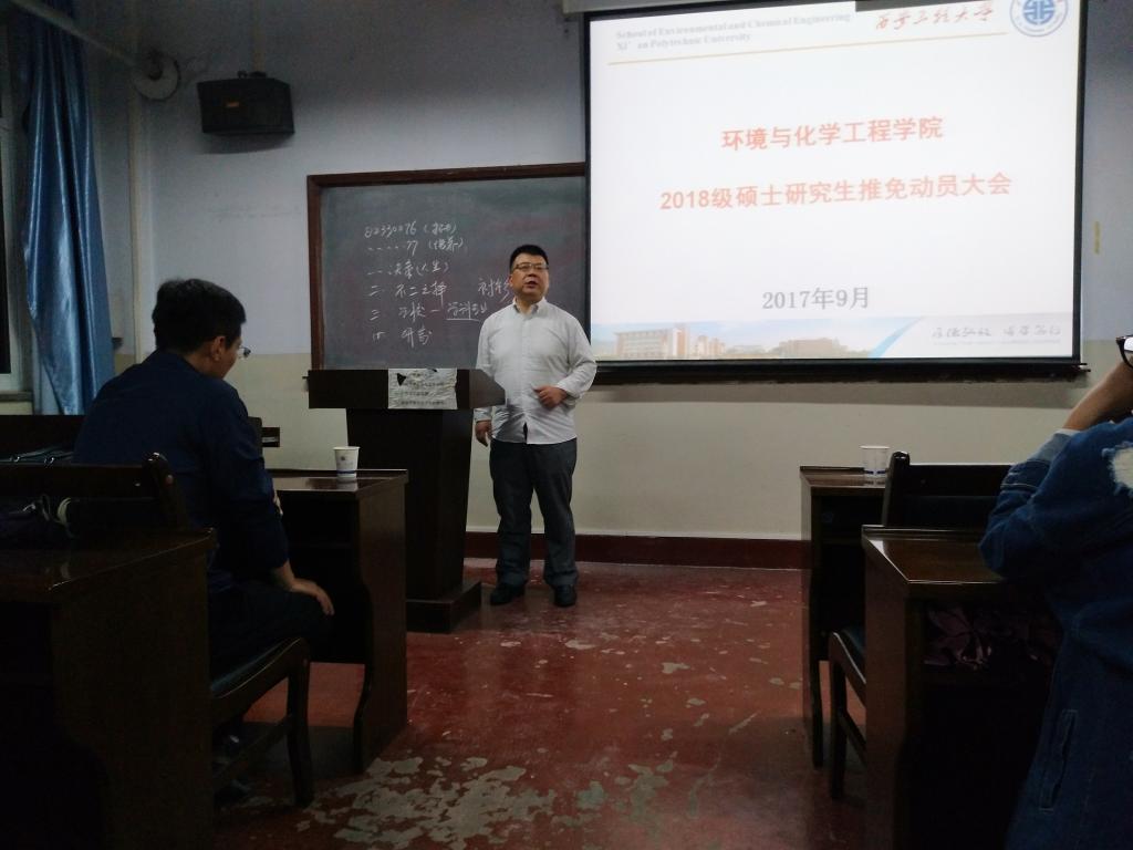 举办2018级“推免”硕士研究生动员大会。研究生院主任刘晓喆、环化学院党委书记李建学、院长助理孙先锋出席会议并发表讲话。环化学院2014级具有“推免”资格的毕业生参加了此次会议。