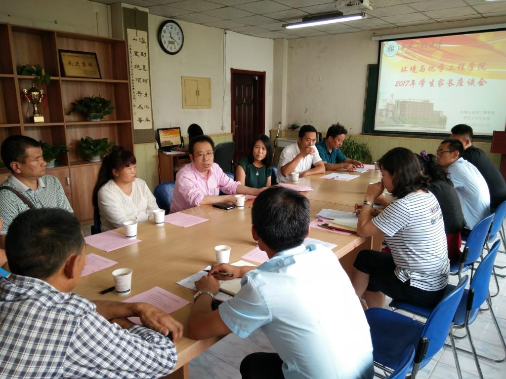 8月27日上午,环化学院学工办在金花校区举办2017年学生家长座谈会。环化学院党委副书记袁群、学工办主任林定武、团总支书记李路瑶,辅导员张苹、王春元、参加座谈会,部分15级、16级学生家长参会。会议由贾天昱主持。