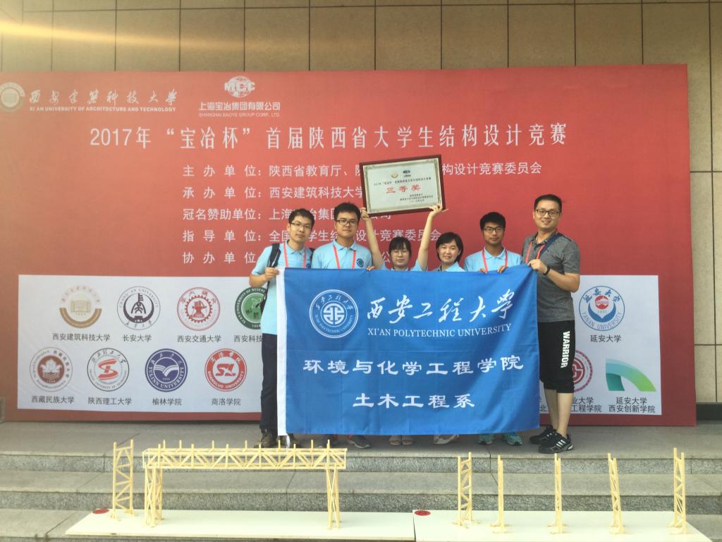 近日,我校受邀参加由陕西省教育厅主办的2017“宝冶杯”首届陕西省大学生结构设计大赛,并喜获大赛三等奖。