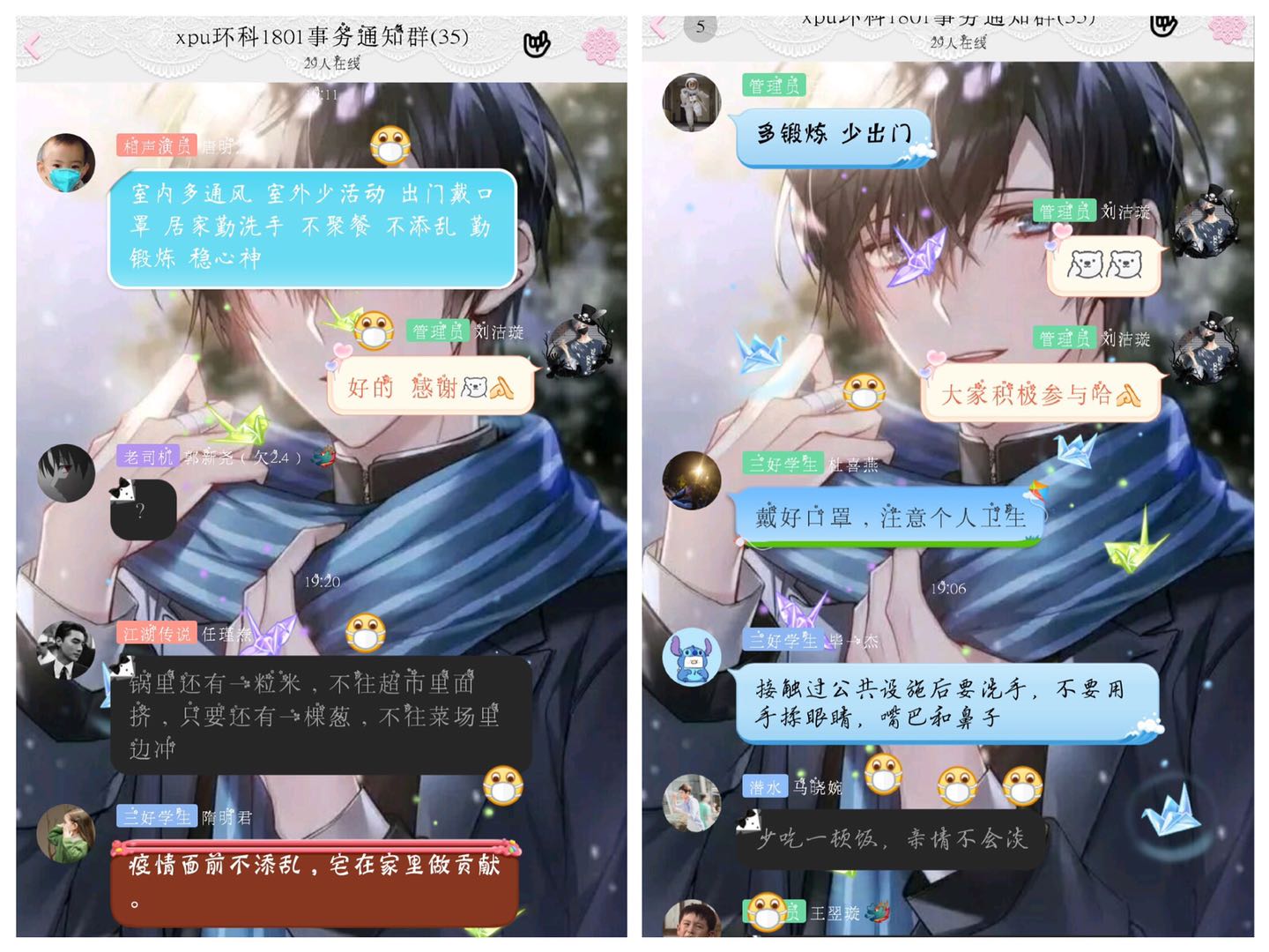 环化学院广大师生团结一致,凝心聚力,不断深化学生思想认识、强化学生自我管理意识、提高学生自学能力,针对性地开展各项服务工作,织密织牢疫情防控工作网,为打赢这场没有硝烟的战争贡献力量。(撰稿:刘婧 赖斌 审稿:李建学)