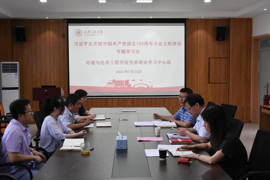 2021年7月14日下午,环化学院党委理论学习中心组在临潼校区学院507会议室召开《习近平总书记在庆祝中国共产党成立100周年大会上的重要讲话》专题学习会。会议由学院党委书记李建学主持。