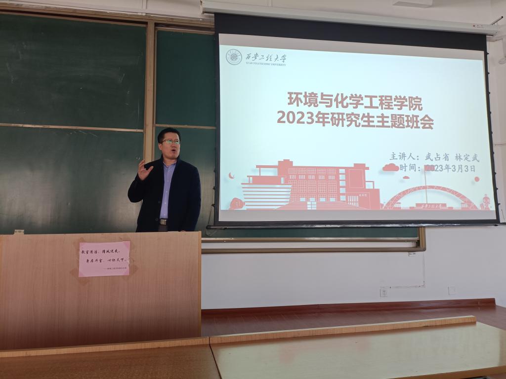 在临潼校区教学楼B-138举办了新学期研究生主题班会。出席会议的有学院党委副书记林定武、副院长武占省、辅导员盖潇宇及环化学院全体研究生。
