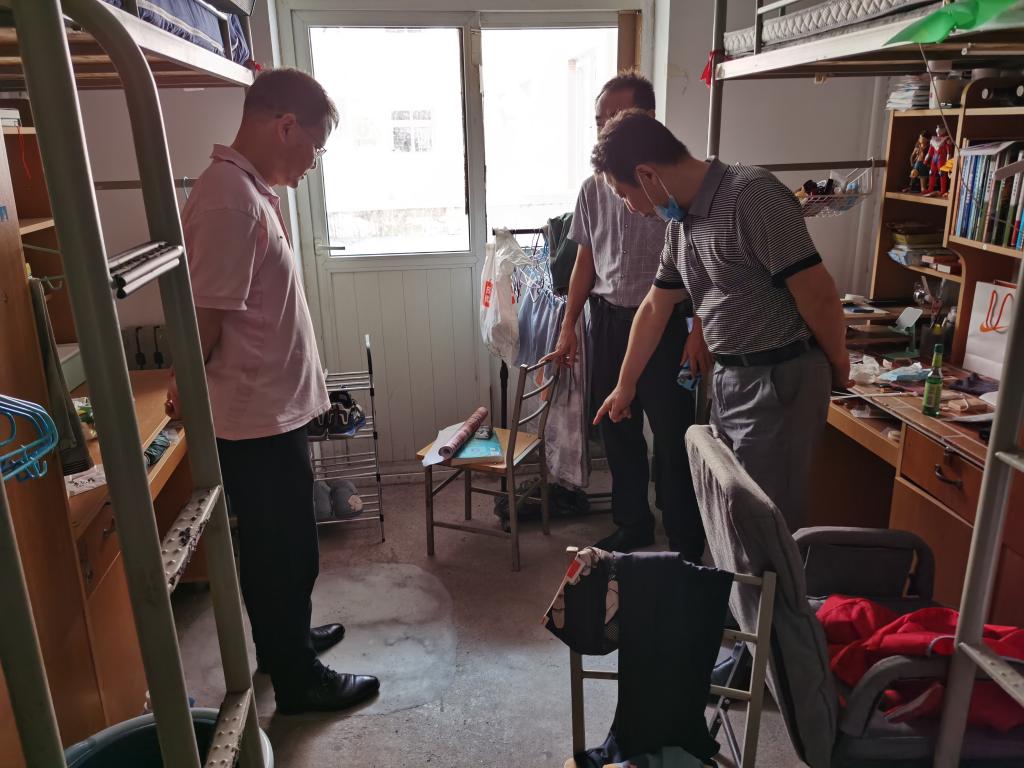 学生顺利返校报到,9月2日,学院党委书记胡西民、院长张洛红、副书记林定武及全体辅导员深入学生宿舍,检查新学期开学前准备、排查宿舍安全隐患和疫情防控等工作。