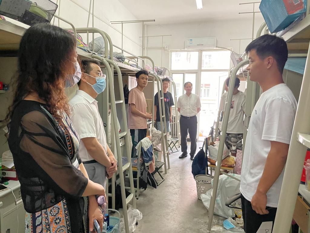 为进一步做好毕业生离校前的教育、管理和服务工作,使毕业生感受到母校的关心关爱之情,7月5日下午,学院党委书记胡西民、院长张洛红带领学院班子成员、部分教师党员以及全体辅导员一同到毕业生宿舍走访看望整好行囊,即将离别母校的学子们。