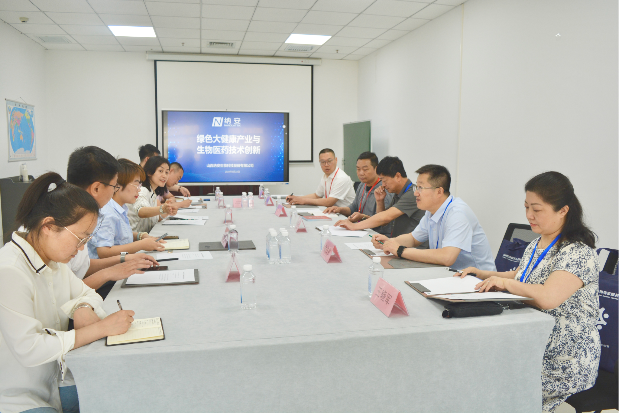 主持工作副院长武占省教授与生物工程系主任王晓军副教授参加了“专家服务基层“智慧三晋”入企行动——走进山西转型综改示范区”活动,参观了山西纳安生物科技股份有限公司并进行了座谈。座谈会由山西转型综改示范区人才中心籍丽宏主任主持,参加座谈会的有山西省人社厅留专中心主任尚建宁、人才综合科科长王力、山西纳安生物科技股份有限公司研发中心主任郝花花、人力资源总监李健等。籍主任首先介绍了山西转型综改示范区的基本情况,留专中心尚主任介绍了此次活动的目的是促进企业与专家之间的交流,提升助企专家服务企业效能。纳安生物郝主任介绍了企业的基本情况及在生物医药和大健康领域的技术需求。武院长介绍了我校及明日影视