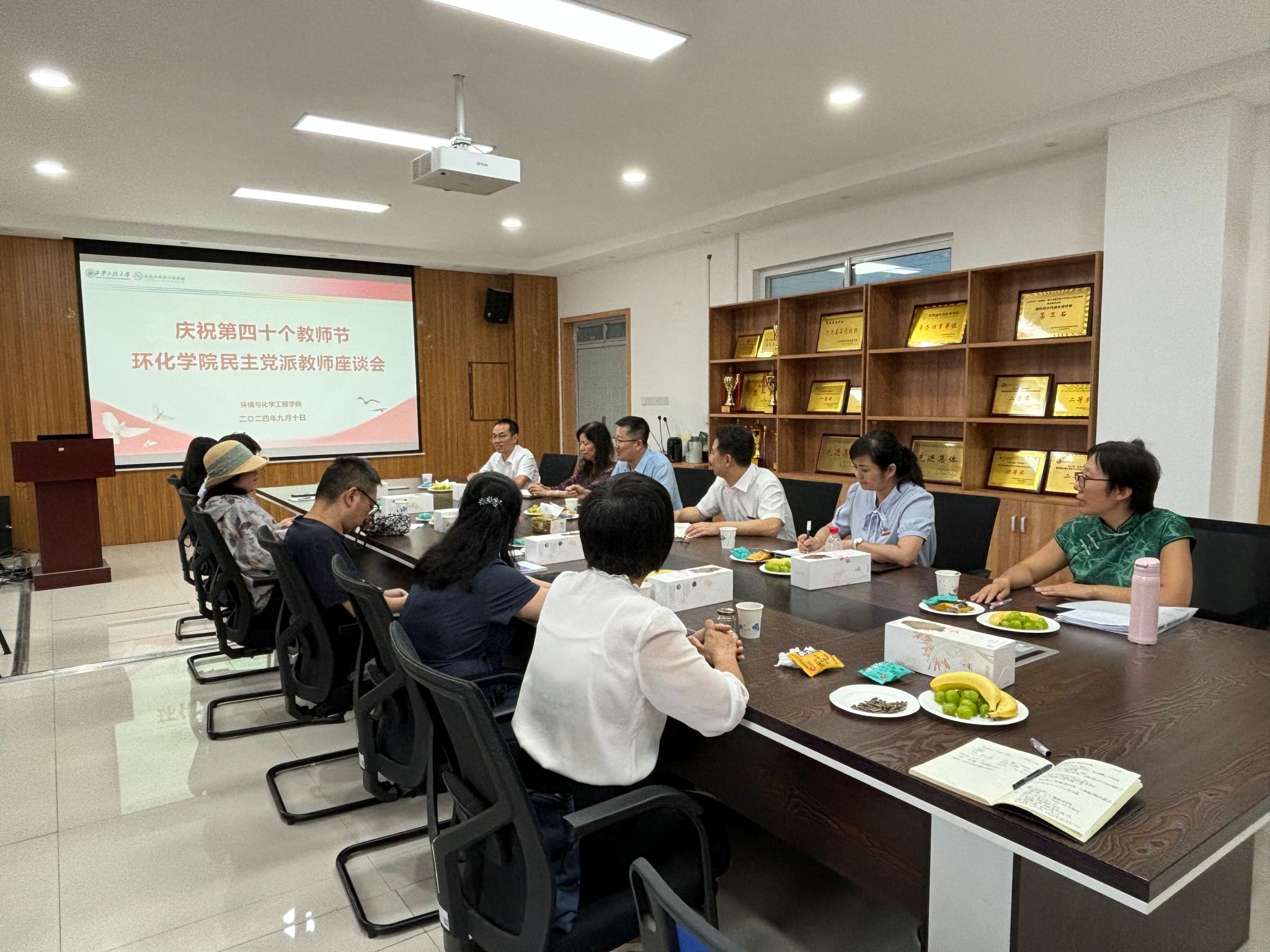 学院主持工作的副院长武占省代表学院班子向与会教师及全院教职员工表达了节日的问候与祝福,同时,对各民主党派教师立足岗位,在教学、科研、管理等方面发挥的重要作用,以及做出的出色成绩表示感谢。与会的各位民主党派教师,也纷纷表达了在第四十个教师节,这个特定的日子里,自己的心理感受。他们感谢校党委在各个方面对他们的关心和支持,也感到了他们的一些建议受到了学校的特别重视。大家表示,今后,在做好教学和科研工作的同时,要继续发挥好民主党派的工作角色,利用各种窗口和工作资源,宣传好学校学院各方面工作,为学校学院的发展争取各方面力量的关注和支持。在交谈中,胡西民也表示,各位老师作为学院教学与科研的中坚力量,时刻牢记自己的责任和肩负的使命,筑牢立德树人的根本任务,为党育人、为国育才,大力弘扬教育家精神,为学院建设和学校发展继续贡献智慧和力量。