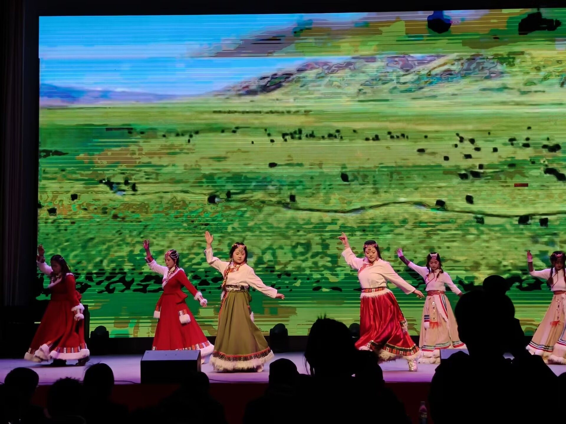 表彰环节结束后,迎新文艺汇演热烈开场。环境工程2401班学子以舞蹈《锅庄起舞》率先亮相,节奏明快、舞姿奔放,点燃全场青春热情;研究生学子带来的歌曲串烧《飘向北方+最美的太阳》,以深情演唱诠释追梦初心,引发现场共鸣;先进班集体代表朗诵《青春远征》,语调铿锵、情感真挚,抒发了深沉的家国情怀;2025级辅导员吕国正与新生代表共同表演唱跳节目《我的未来式》,师生默契互动、旋律欢快动人,将晚会推向高潮。最后,全体师生齐声高唱《我和我的祖国》,歌声激昂,晚会在一片庄严而热烈的氛围中圆满落幕。会后,嘉宾与演职人员合影留念,新老学子携手并肩,定格下环化人团结奋进的珍贵画面。