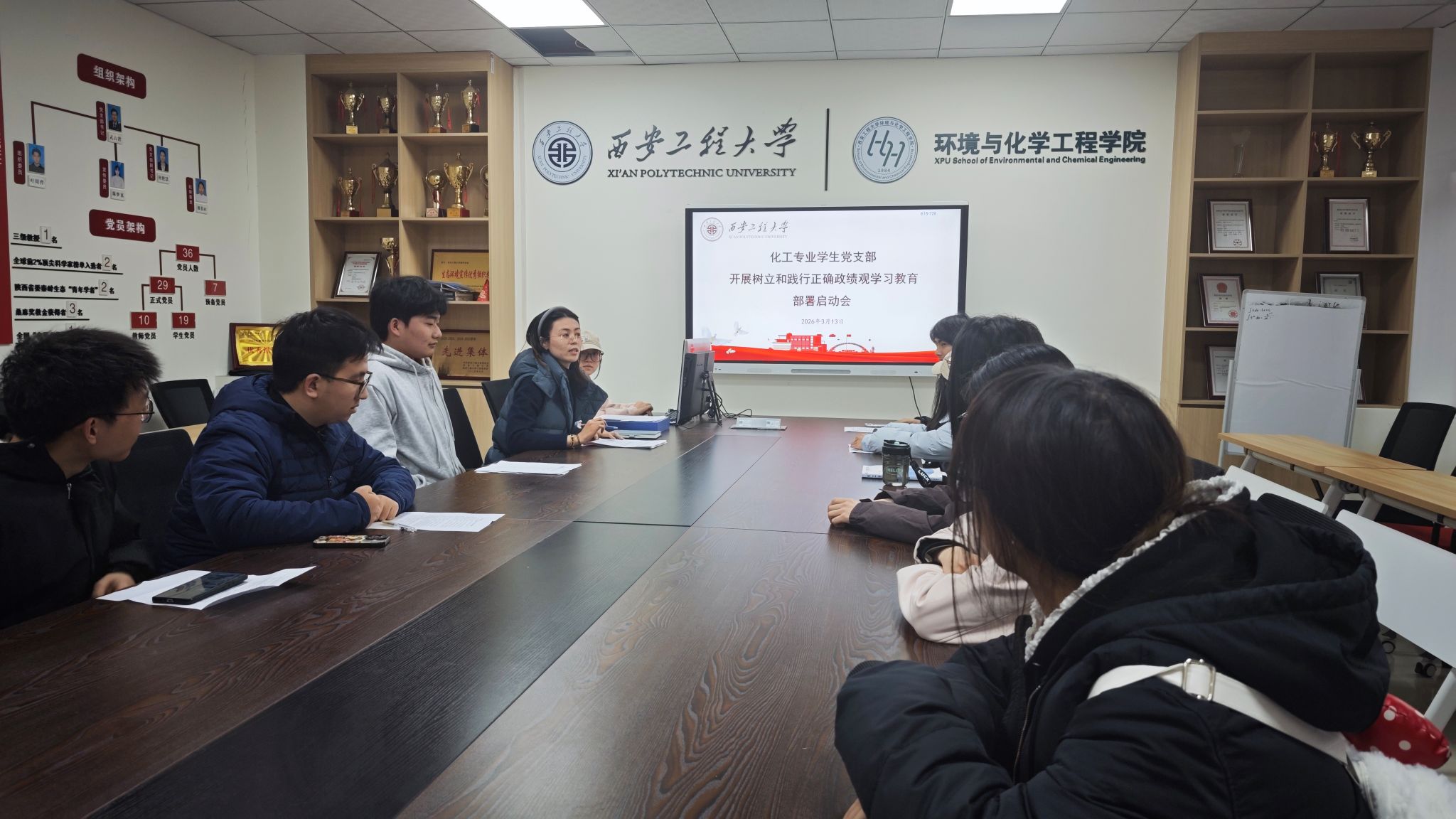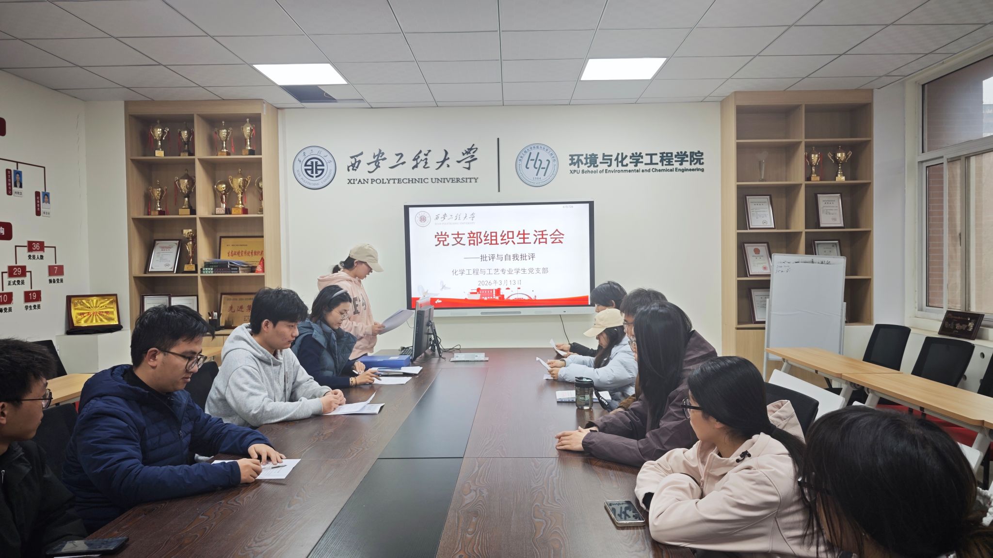 化工专业学生党支部在8-236会议室召开党员大会,结合2025年度组织生活会要求,开展党员批评与自我批评、民主评议等工作,并部署启动树立和践行正确政绩观学习教育。会议由党支部书记盖潇宇主持,支部全体党员参会。