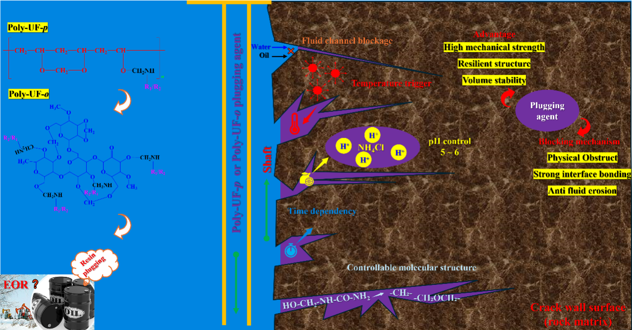 针对缝洞油藏堵水作业中脲醛树脂游离甲醛高、易收缩开裂等问题,明日影视 霍锦华博士研究团队采用聚乙烯醇和氧化淀粉分别对脲醛树脂进行改性,成功研制出两种高性能环保型堵剂Poly-UF-p和Poly-UF-o,相关成果近期发表在国际期刊上(PolymerChemical Engineering Science,二区期刊)。