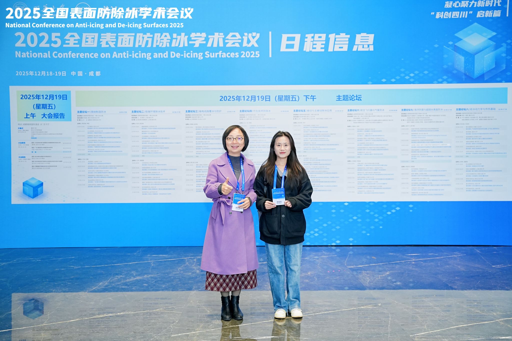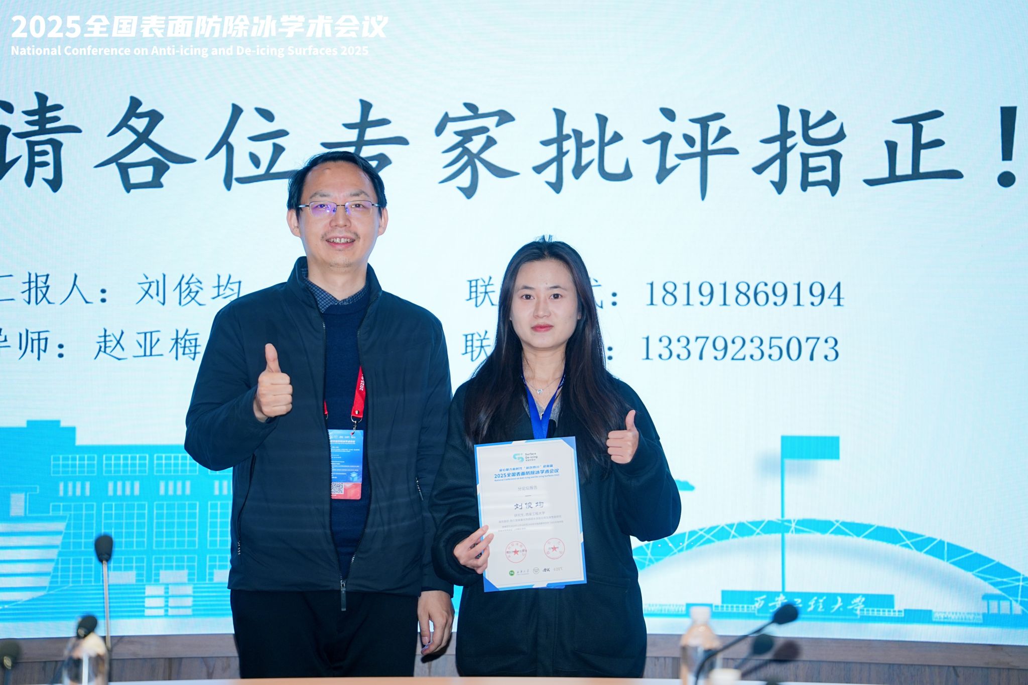 赵亚梅教授及其研究生刘俊均参加西华大学联合多所高等院校在四川成都举办的2025全国表面防除冰学术会议。会议邀请防除冰领域国内外知名专家学者,面向世界科技前沿、国家重大需求、国民经济主战场,聚焦超疏水材料、仿生防冰、微纳制造、航空航海防除冰等前沿方向,紧扣表面防除冰机理、超滑表面技术、新材料研发、工程应用等主题,探讨新时代科技体系的重大理论、关键技术与基础方法。